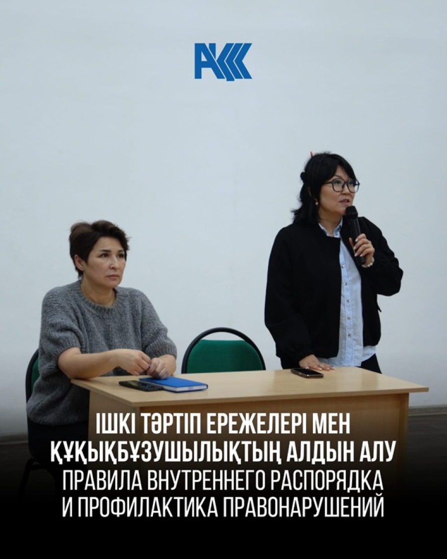 ? 17 сентября 2025 года в Высшем многопрофильном колледже гражданской защиты прошла встреча со студентами первого курса. Заместитель директора по воспитательной работе Шайхина Г.Ж. и инспектор по профилактике правонарушений Кошкенова А.О. провели беседу о правилах внутреннего распорядка и профилактике правонарушений.