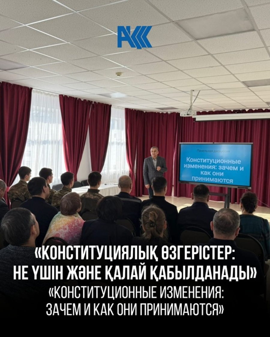 25 февраля 2026 года в Высшем многопрофильном колледже гражданской защиты прошла панельная дискуссия на тему «Конституционные изменения: зачем и как они принимаются». Инициатором и модератором встречи выступил заведующий кафедрой Гражданской защиты, полковник ГЗ Кадыров Рамазан Татжанович. Мероприятие было организовано для преподавателей с целью повышения правовой культуры и углубления понимания конституционных процессов в Республике Казахстан.